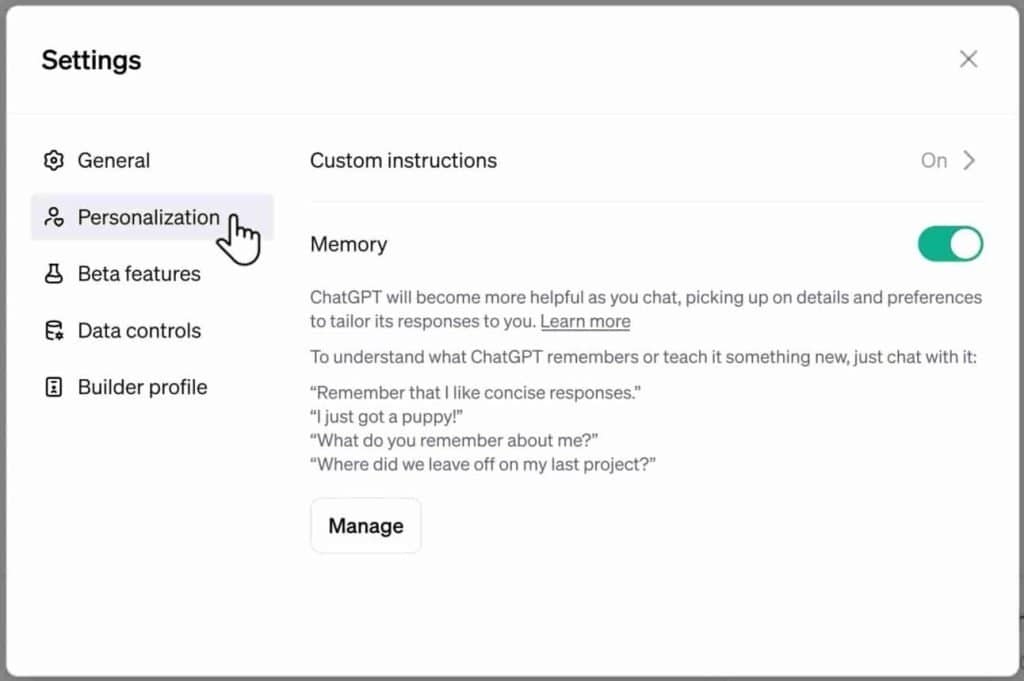 Ahora puedes volver a la ventana de chat e insertar cualquier instrucción que te gustaría que ChatGPT recuerde.