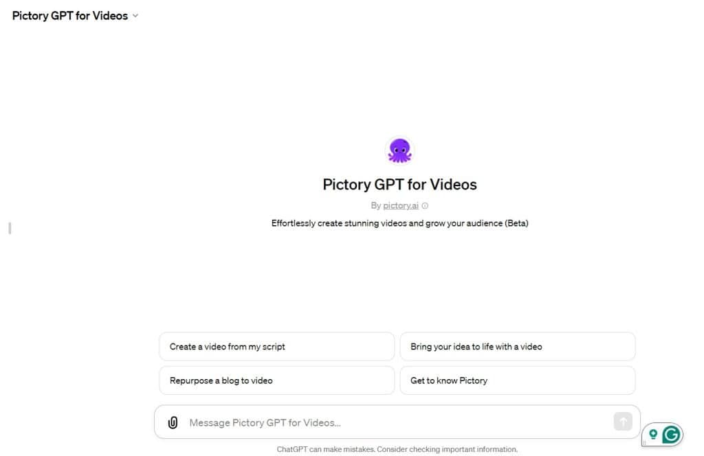 Paso 2: Haz clic aquí para acceder a la Pictory GPT para vídeos en ChatGPT o busca «Pictory GPT» en la sección «Explore GPTs».