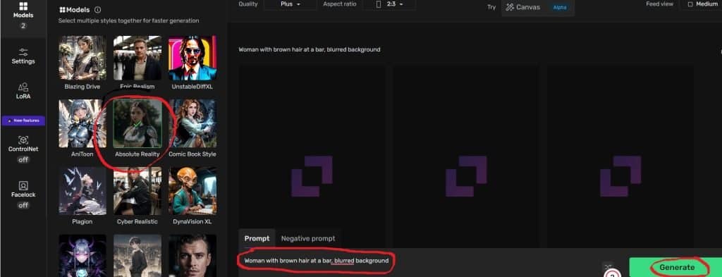 - Ahora, ve a Studio, haz clic en Models a la izquierda y selecciona el modelo (yo elegí Absolute Reality)