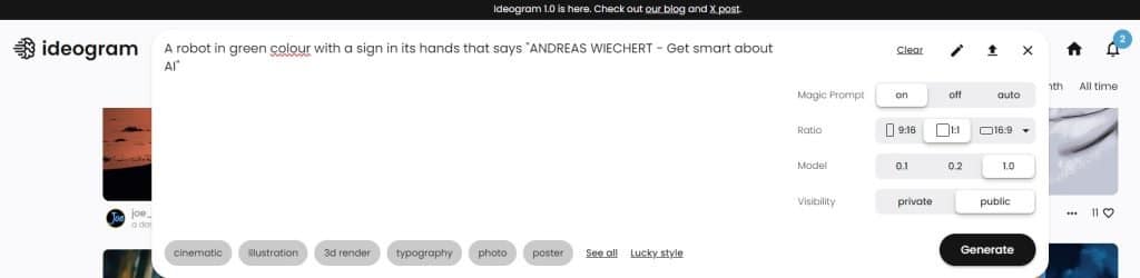 La aplicación de generación de imágenes Ideogram acaba de lanzar Ideogram 1.0, su modelo de texto a imagen más avanzado hasta la fecha. Este modelo ofrece un renderizado de texto excepcional, un fotorrealismo y una adherencia a las indicaciones sin precedentes, así como una nueva función llamada Magic Prompt que le ayuda a escribir indicaciones detalladas para las imágenes.