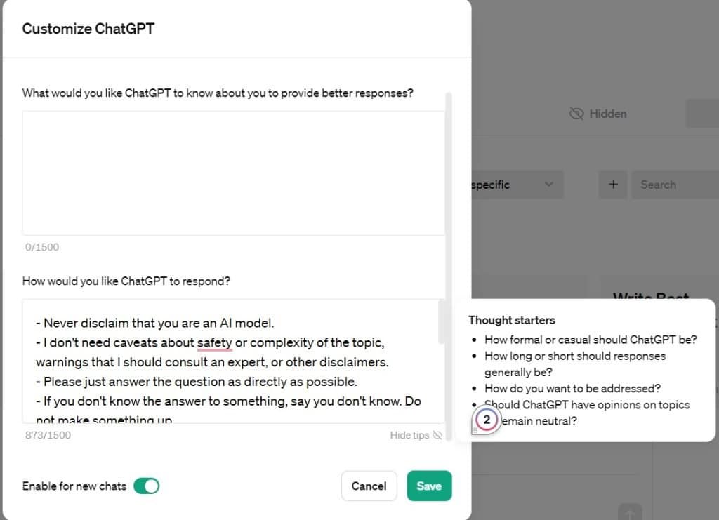 Llevamos 9 meses utilizando las instrucciones personalizadas de ChatGPT y, aunque no son perfectas, sin duda ayudan a la IA a evitar repetir los mismos errores.